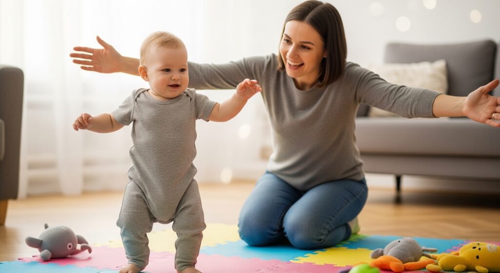 언어 발달도 이 시기에 큰 전환점을 맞아요. 의미 없이 반복하던 옹알이가 드디어 의미 있는 첫 단어로 바뀌기 시작해요. “엄마”, “아빠”, “맘마” 같은 첫 단어가 나올 때의 감동은 겪어본 부모만 알 수 있어요. 운동과 언어, 두 가지 발달이 동시에 폭발하는 가장 드라마틱한 시기예요.